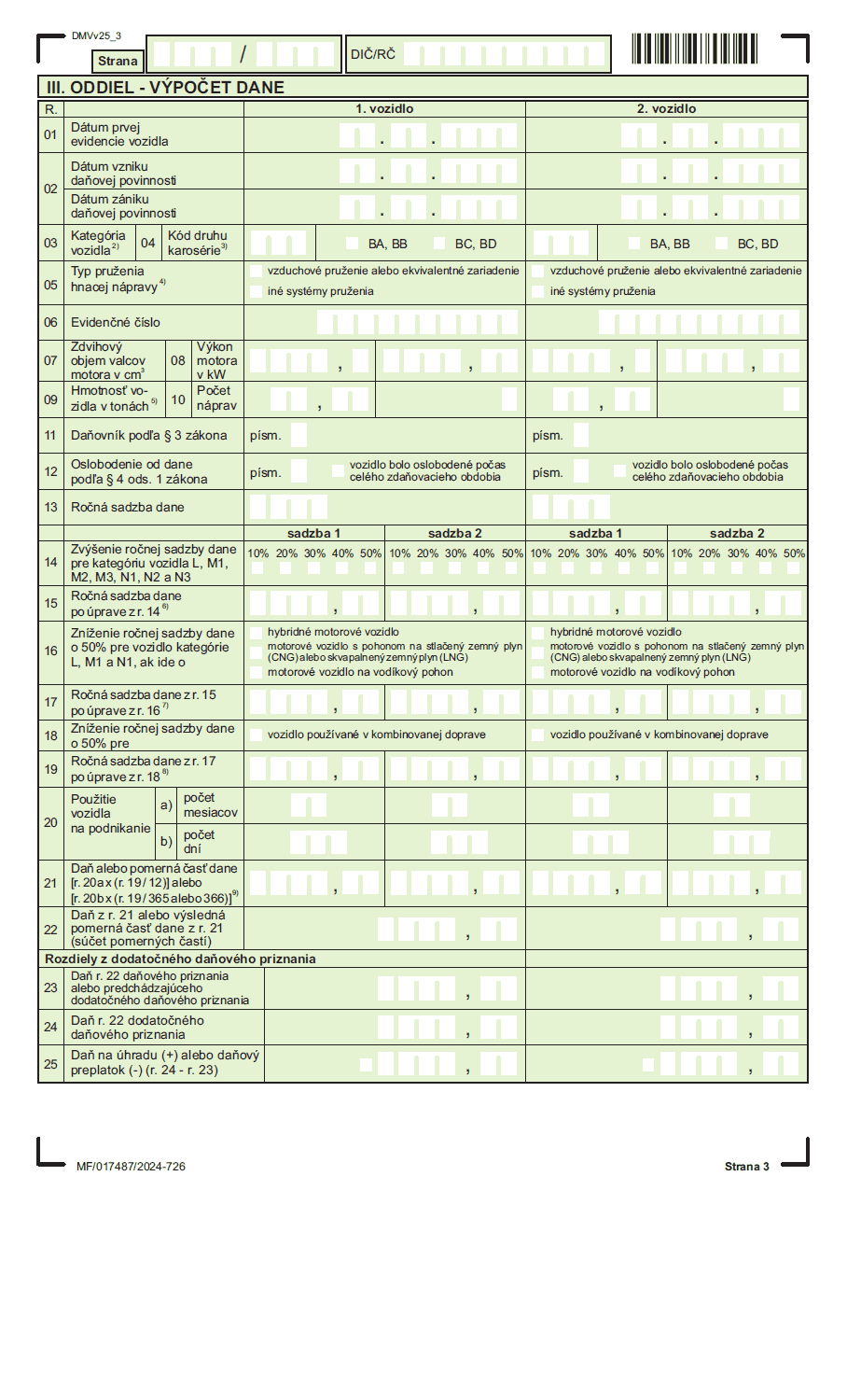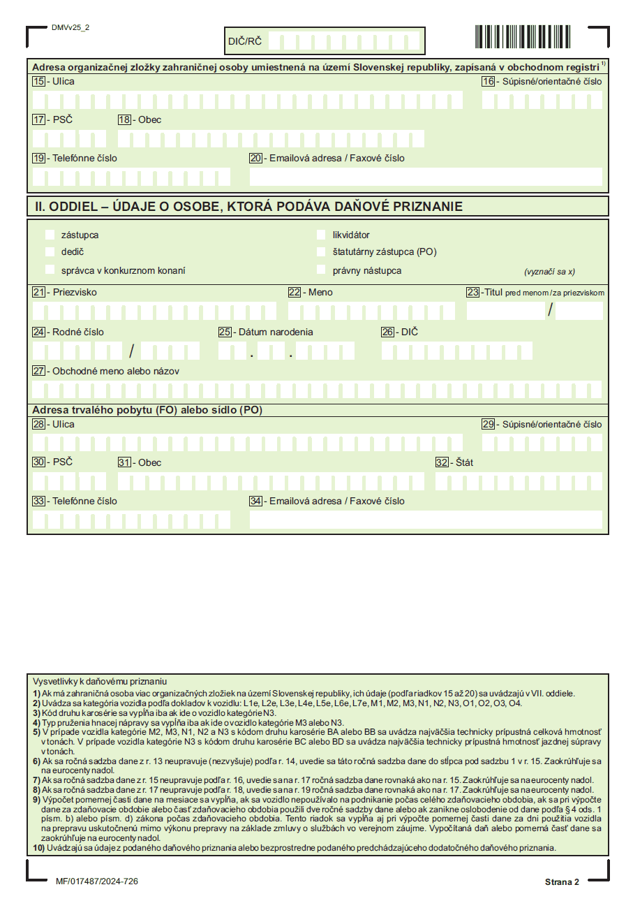 - Finančná správa SR - Elektronický formulár pre daň z motorových vozidiel platný do 31.12.2025 (za rok 2024)