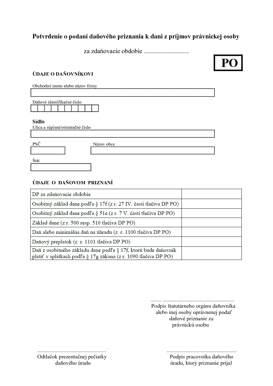 Toto je potvrdenie ku daňovému priznaniu pre Daň z príjmu právnických osôb.