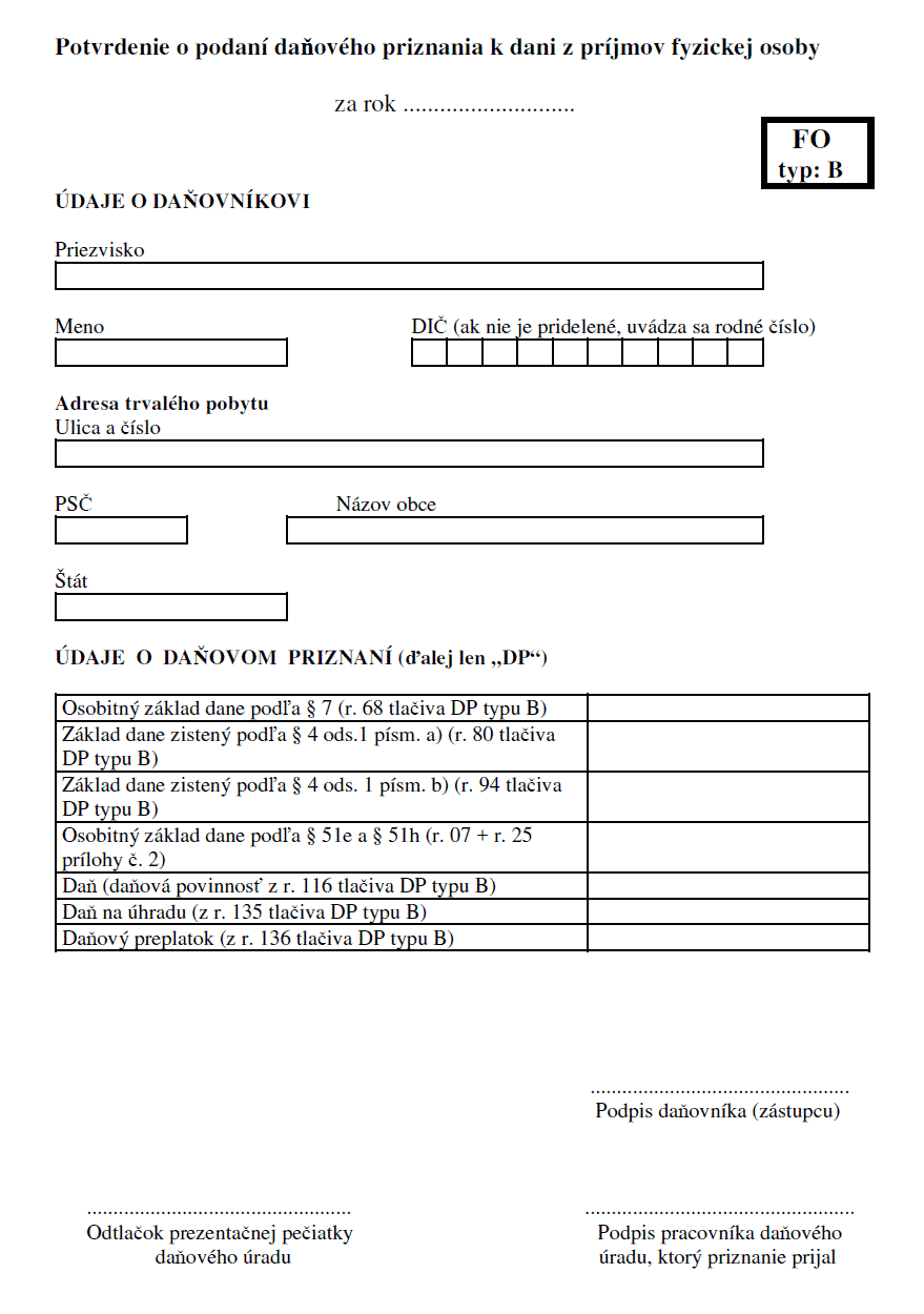 Daňovým priznaním pre daň z príjmu fyzických osôb typ B.
