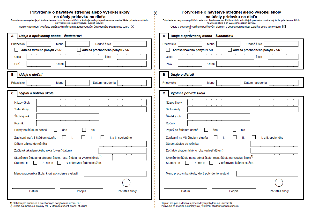 Tlačivo môžete vyplniť, ale vytvoriť alebo odoslať ho na email je možné až po prihlásení. Ak ešte nemáte prihlasovací účet môžete si ho vytvoriť alebo sa prihláste cez sociálnu sieť, ak ste už registrovaný užívateľ. (?)