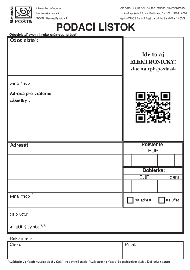 Potrebné je poznať len podacie číslo v tvare EPH 123 456 789, ktoré sa zobrazí po úspešnom odoslaní zásielky do elektronického systému Slovenskej pošty.