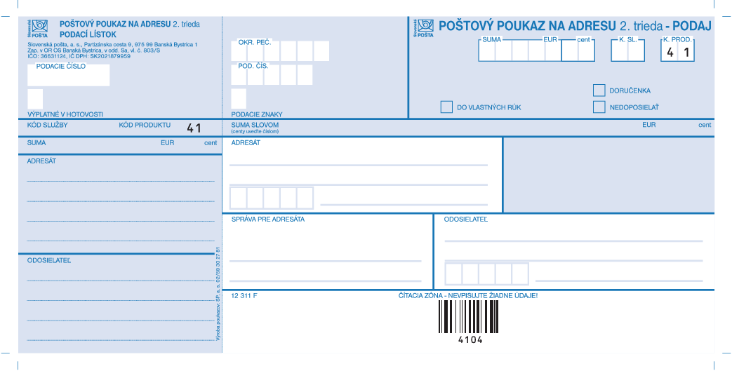 Detailný popis tlačiva nájdete na stránkach Slovenskej pošty.