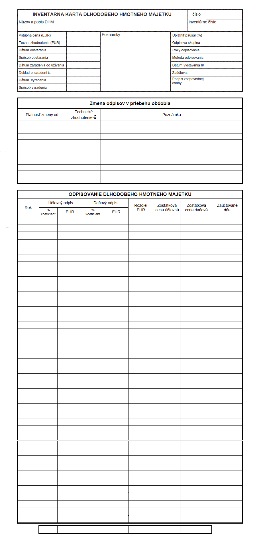 Inventárna karta DHIM - dlhodobý majetok, výpočet odpisov