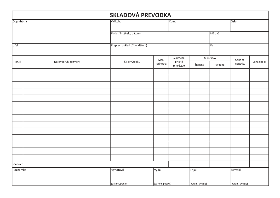 Podobné tlačivá sú skladová príjemka, skladová výdajka, skladová karta zásob alebo inventárna karta DHIM.