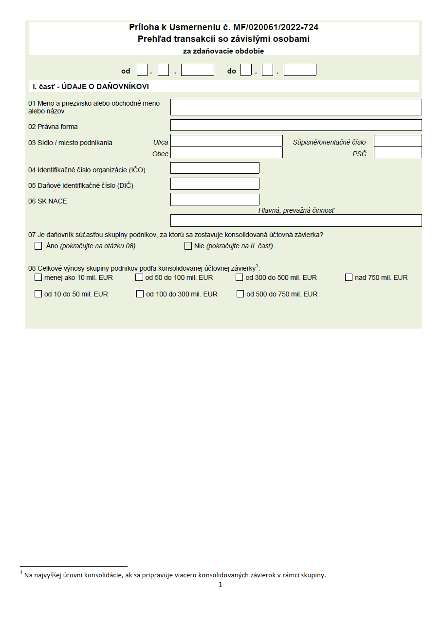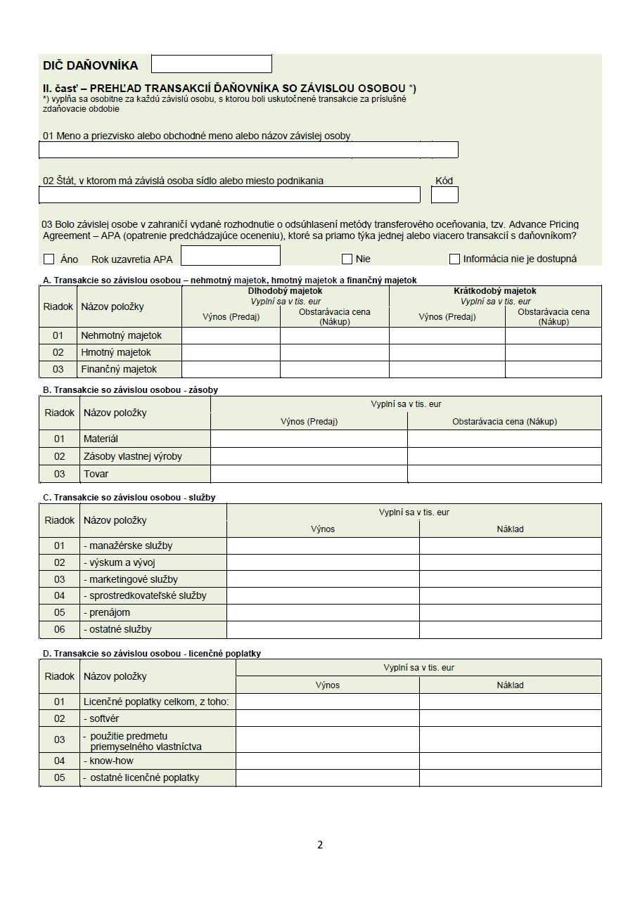 Toto tlačivo môže byť požadované daňovou kontrolou pri kontrole dani z príjmu právnických osôb (pozrite Pokyny).