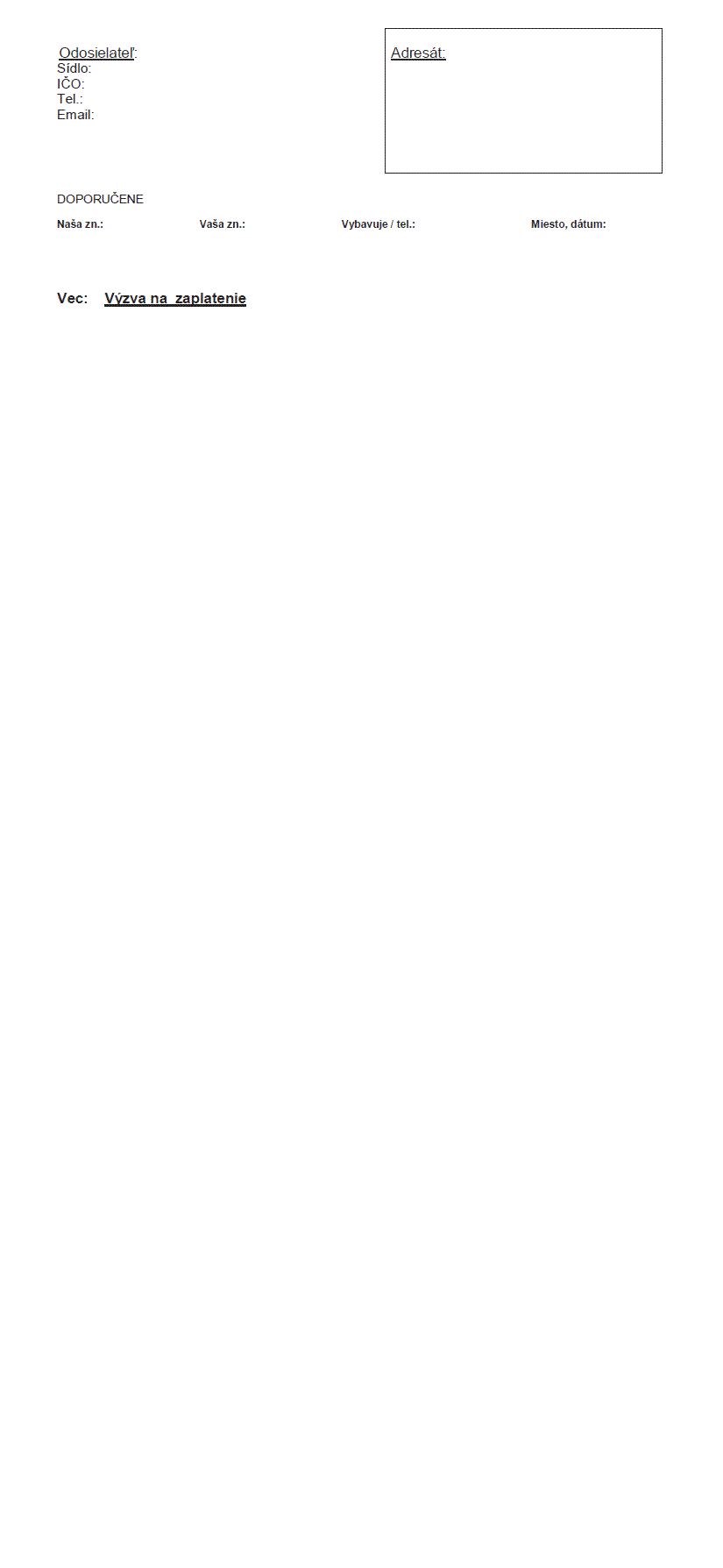 Podobné tlačivá sú Výzva na zaplatenie faktúry, Zmluva o postúpení pohľadávky, Dohoda o započítaní vzájomných pohľadávok alebo Daňová exekučná výzva.