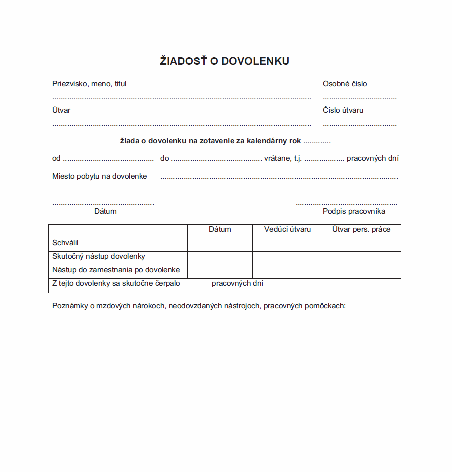 Súvisiace tlačivá sú Výkaz odpracovaných hodín, Montážny denník, Evidencia dochádzky zamestnancov alebo Žiadosť o pracovné voľno.
