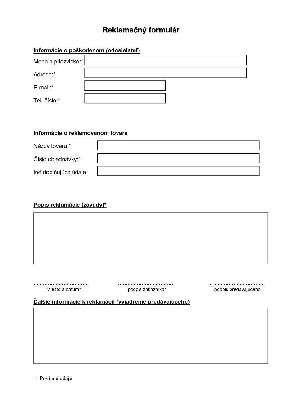 Podobné tlačivo je Žiadosť o reklamáciu - Reklamačný protokol alebo Odstúpenie od kúpnej zmluvy pri vrátení tovaru.