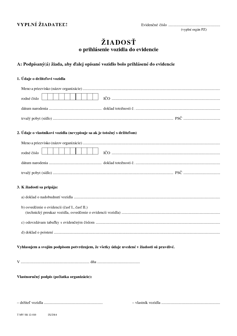 Tlačivo môžete vyplniť, ale vytvoriť alebo odoslať ho na email je možné až po prihlásení. Ak ešte nemáte prihlasovací účet môžete si ho vytvoriť alebo sa prihláste cez sociálnu sieť, ak ste už registrovaný užívateľ. (?) Prihlásenie cez sociálnu sieť bude fungovať len ak pre prihlásenie na portáli ipdf.sk používate rovnaký email, akým sa registrujete v sociálnej sieti.